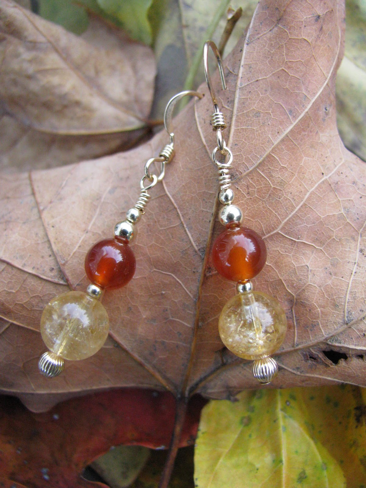 Right now I am captivated by pearls and my thoughts keep drifting to the sea with its fresh colours and cooling salty breezes. I made these two pairs of sterling silver earrings. Each with a large freshwater pearl and a Citrine bead, one has Peridot and the other pink Jasper.