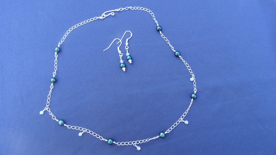 Fresh-water peacock pearls and tiny moonstones.